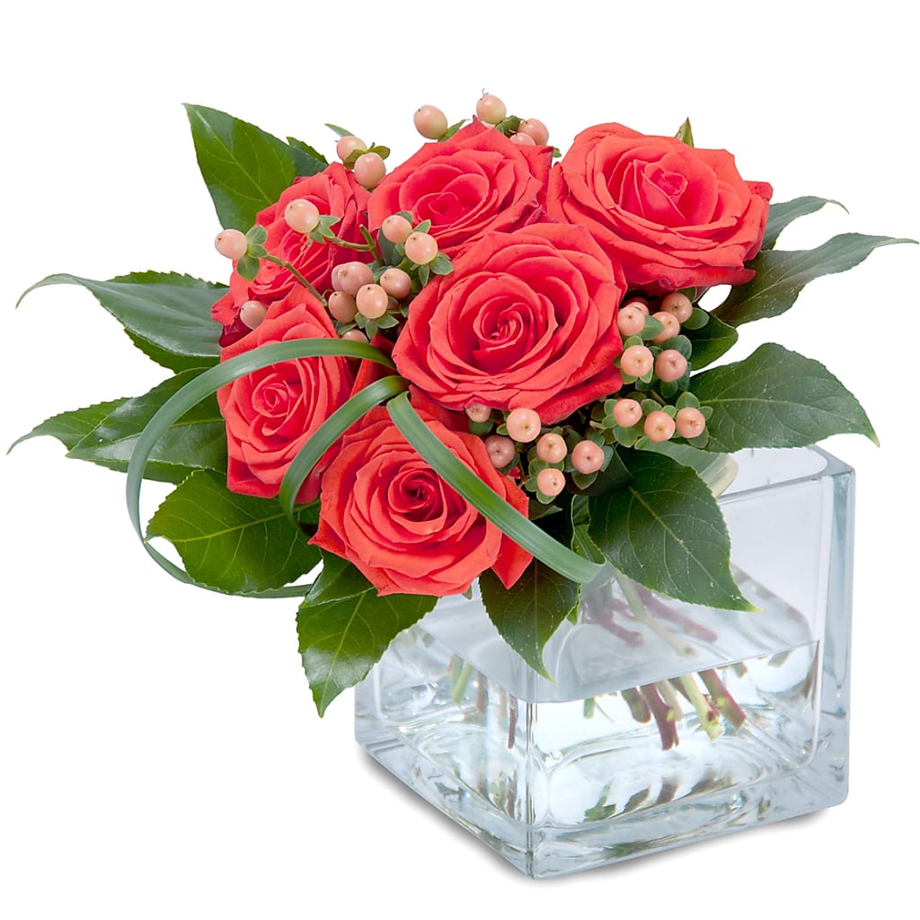 A modern twist to six roses. Contemporary and stylish.