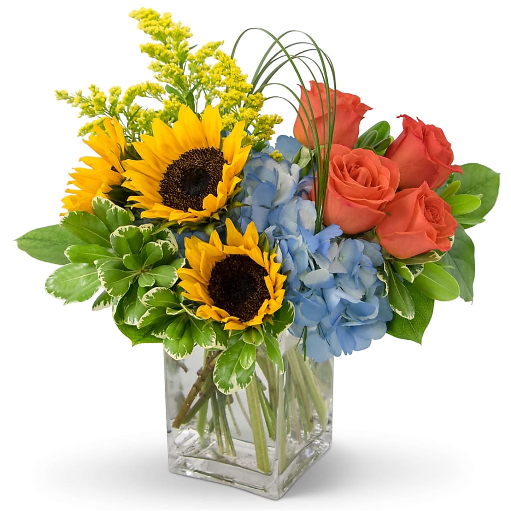 The days are longer, and the memories are sweeter in summertime. Blooms such as roses, sunflowers and hydrangea are surrounded by loops of lily grass and premium greens. The Summer Fun bouquet will bring a little of that carefree summer spirit inside.